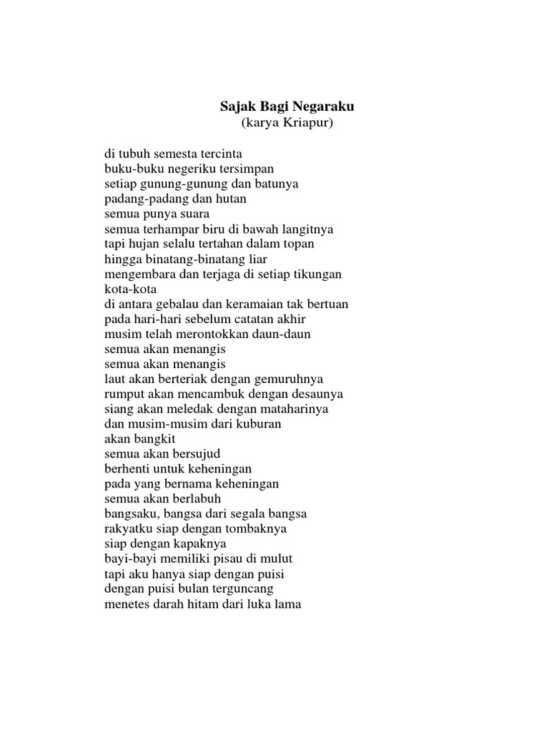 Home puisi puisi kriapur puisi tentang keheningan puisi tentang kota puisi untuk negeri ini sajak puisi. Read story puisi untuk negaraku indonesia by tiomahmudin2009 priyo setioko with 15 418 reads. Contoh puisi lama dan tabel identifikasinya soal belajar dari rumah tvri 10 september 2020 untuk sd kelas 4 6.