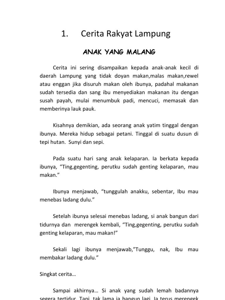 Effendi Sanusi 1996 membagi sastra lisan Lampung menjadi lima jenis. Kemampuan menelaah struktur dan kebahasaan puisi rakyat puisi lama pada siswa kelas vii semester genap smp muhammadiyah 1 pringsewulampung tahun pelajaran 2018- 2019 oleh ria destiana sekolah tinggi keguruan dan ilmu pendidikan muhammadiyah pringsewu lampung. Dan ternyata dalam acara HPI hanya UKM SENIOR Universitas Mitra Indonesia sendiri yang tampil dari perwakilan Lampung.
